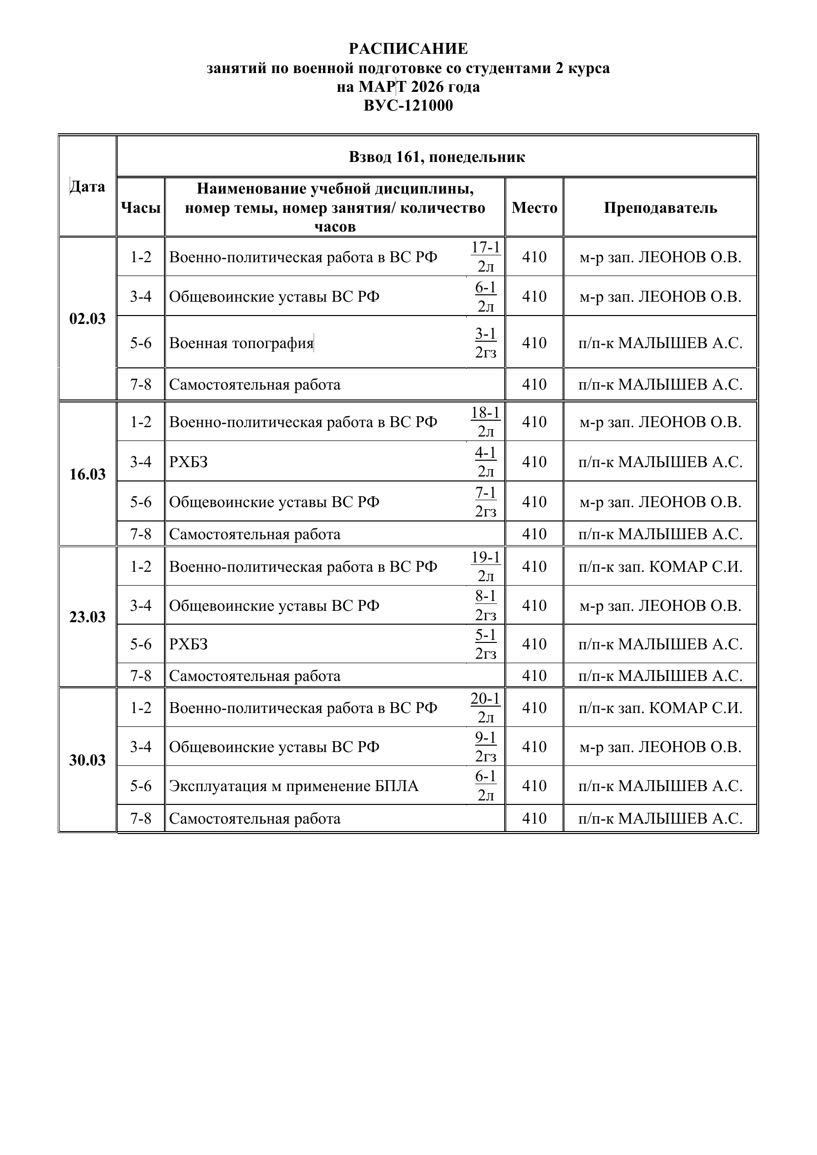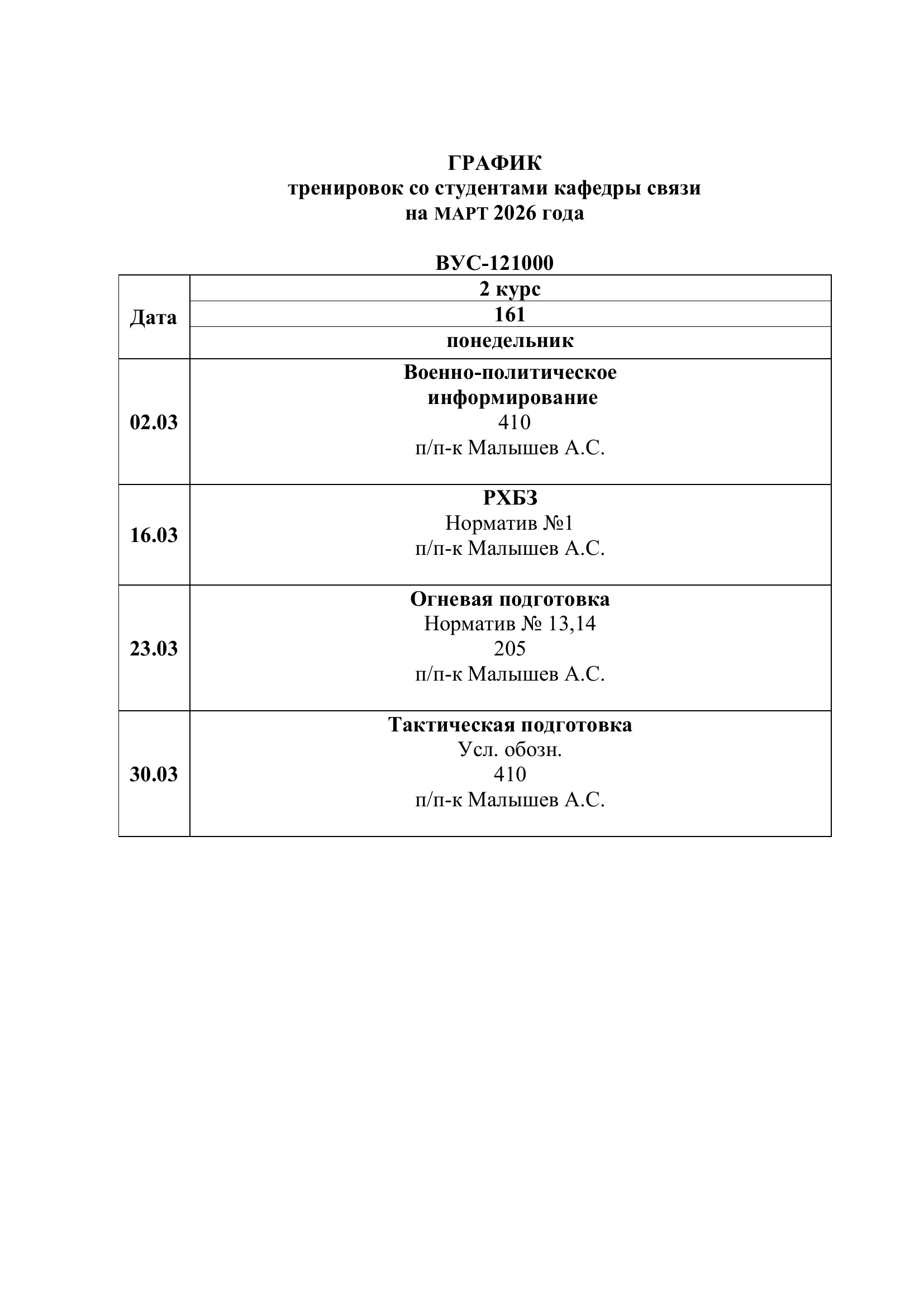 Подготовка проводится по военным специальностям для войск связи и войсковой разведки.